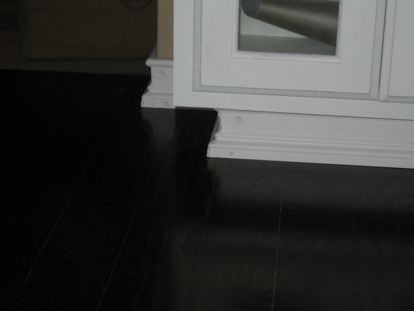Our base board trim solution. I love how the white conrasts with the dark wood floor
